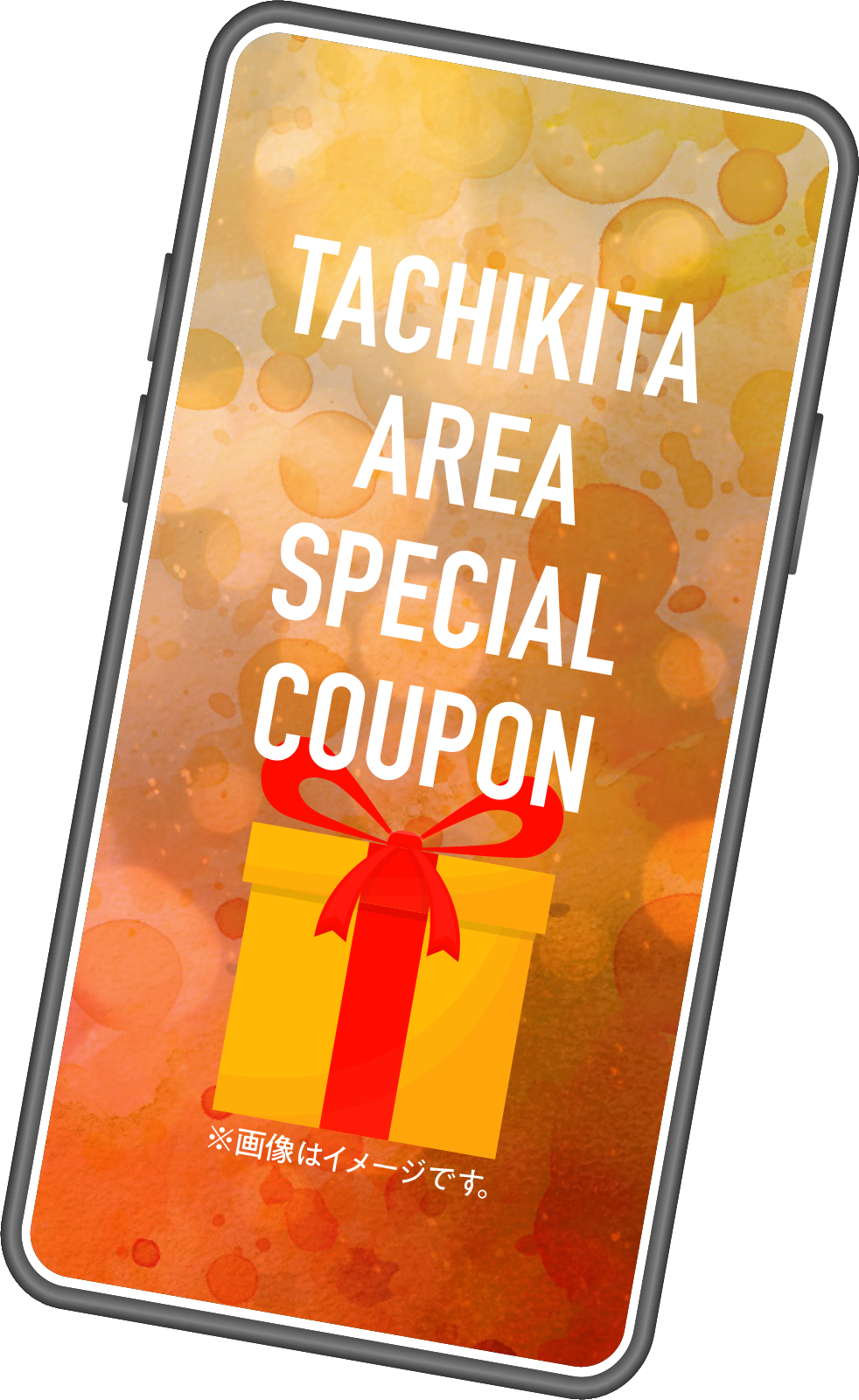 たちきたエリアー帯の魅力を、体感いただけるクーポンです。 参加店舗にお持ちいただくと、お得なサービスが受けられます。