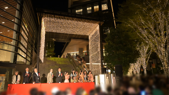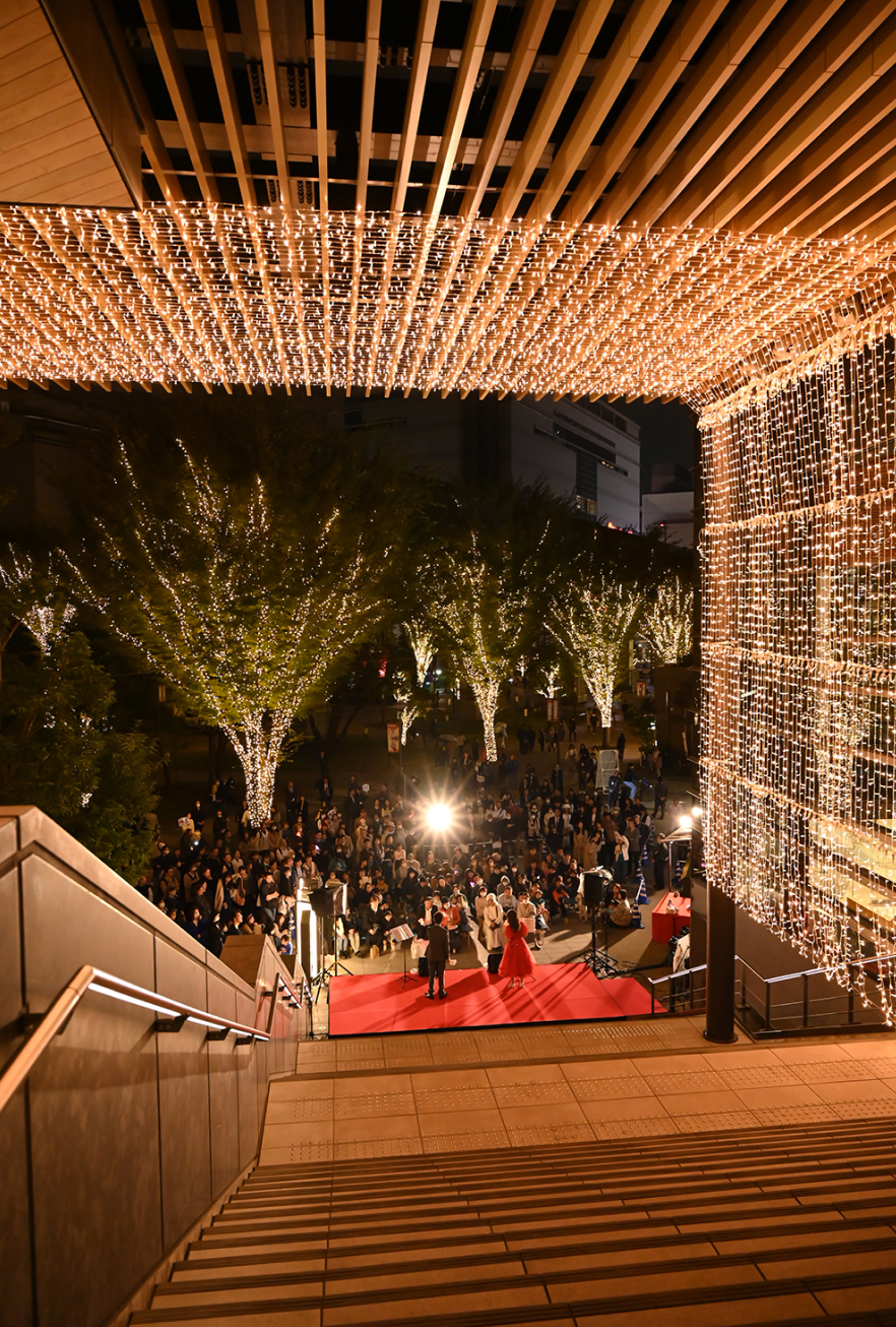 たちかわイルミネーションのはじまりを告げる点灯式。 冬のサンサンロードに光が灯る瞬間。 ロージークロニクルのパフォーマンスと共に、 幻想的な世界の幕がこの日開きました。